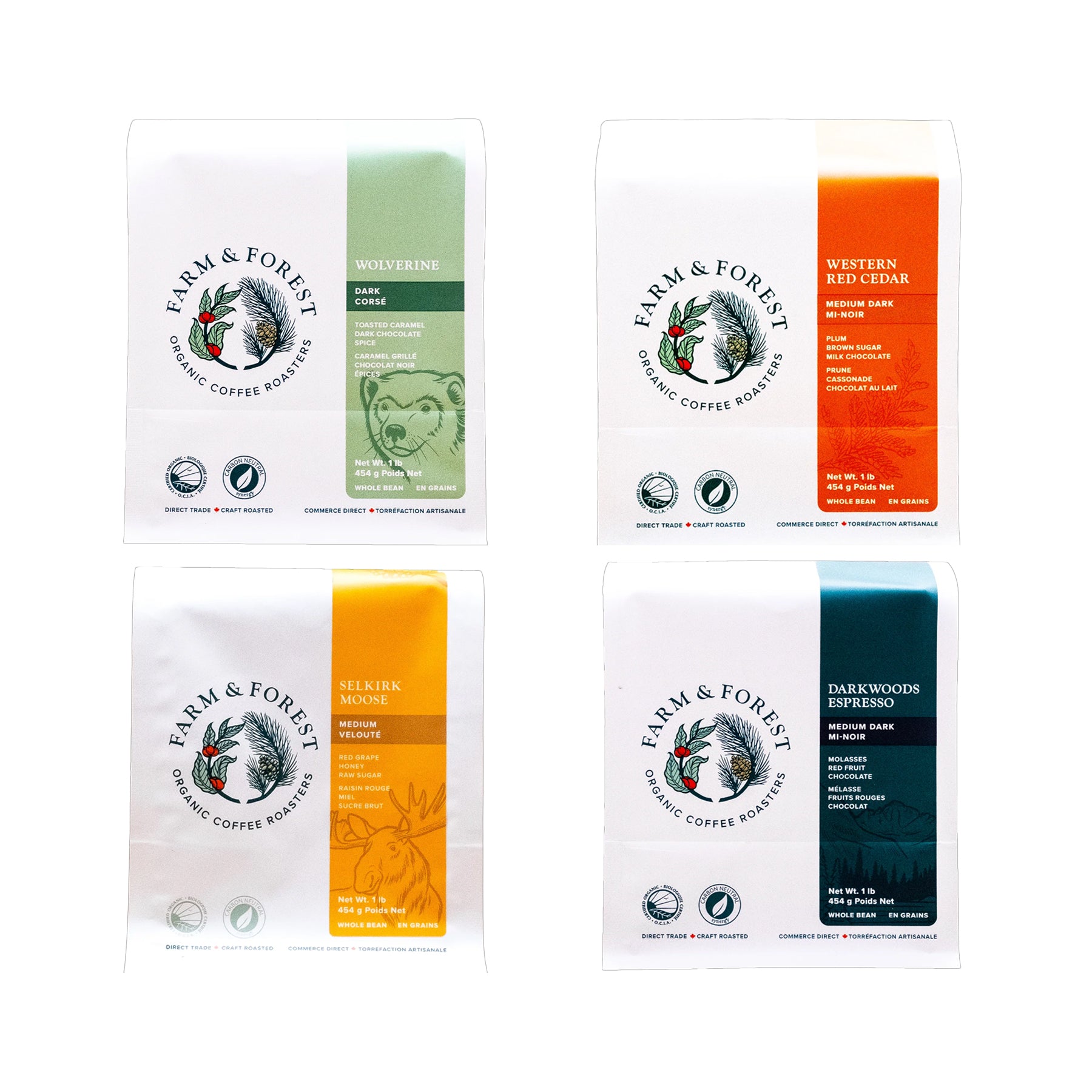 Sampler Pack 4x 200g: Wolverine, Western Red Cedar, Selkirk Moose, Dark Woods Espresso