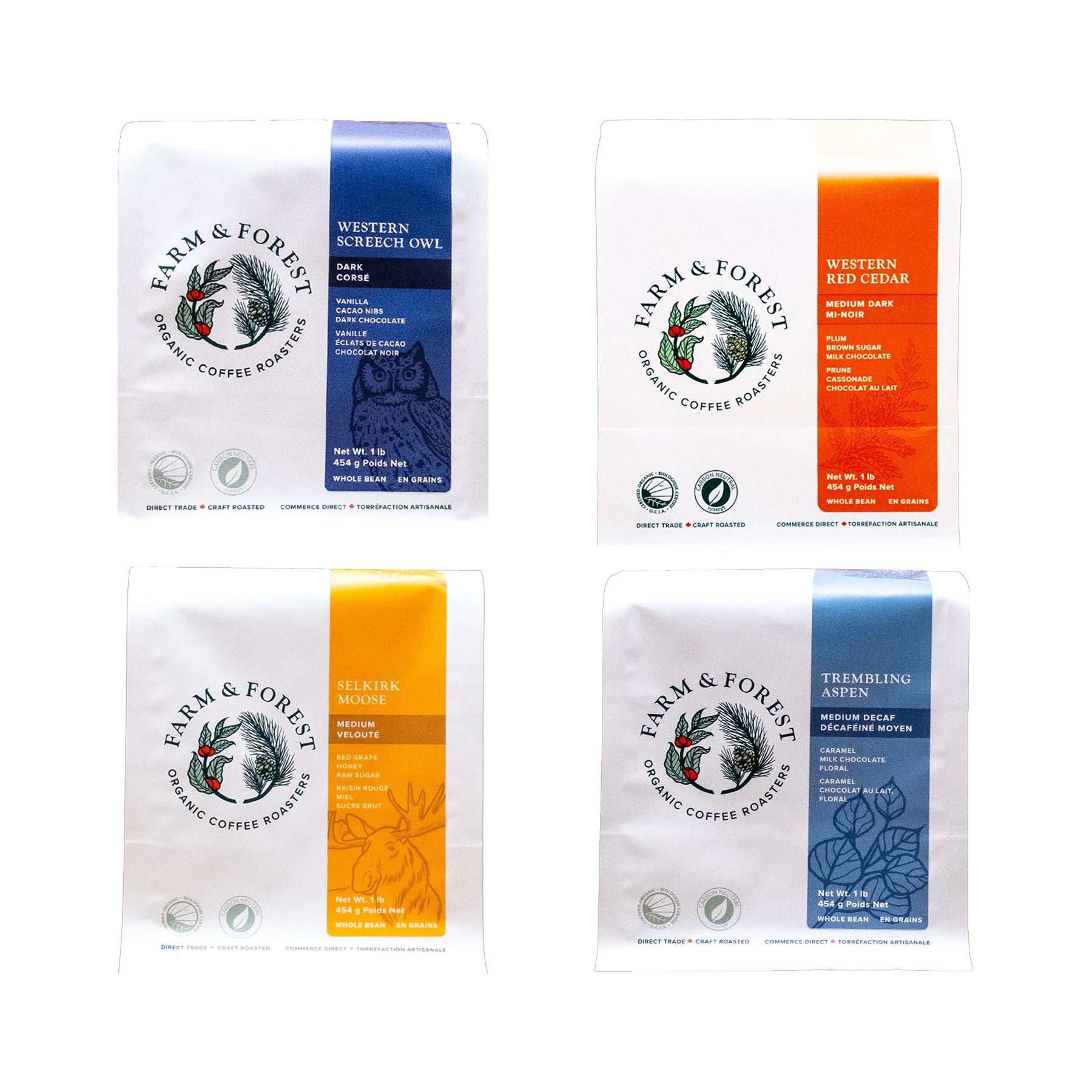 Sampler Pack 4x 200g: Western Screech Owl, Western Red Cedar, Selkirk Moose, Trembling Aspen